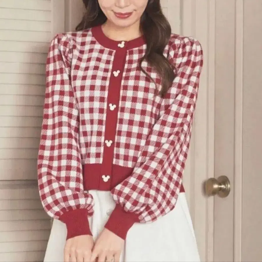 Areeam 아림 미키&미니 체크 무늬 니트 가디건