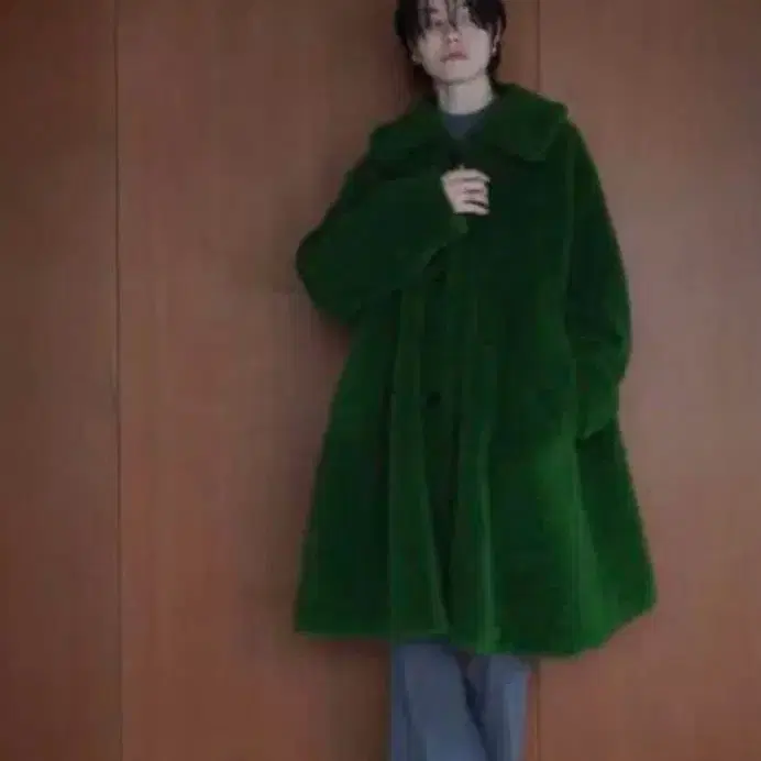 CLANE 클라네 샤기 모헤어 코트 피코트 그린 FREE