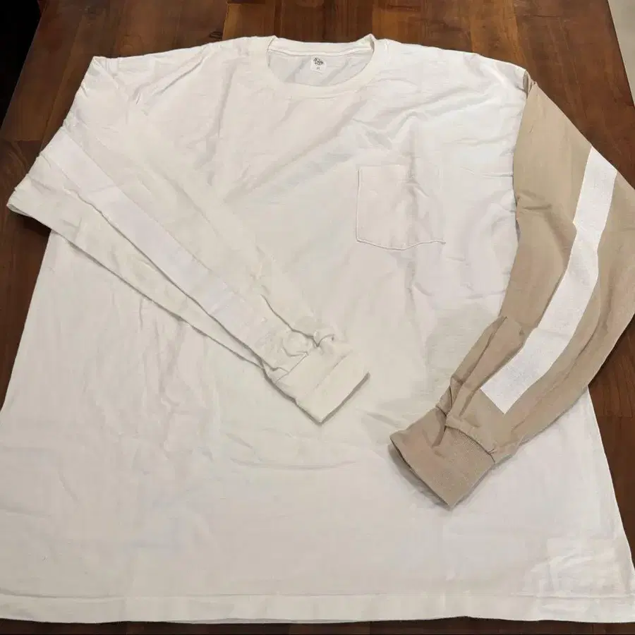 몸통과 왼쪽 소매를 미묘한 배색으로 콤보했습니다.