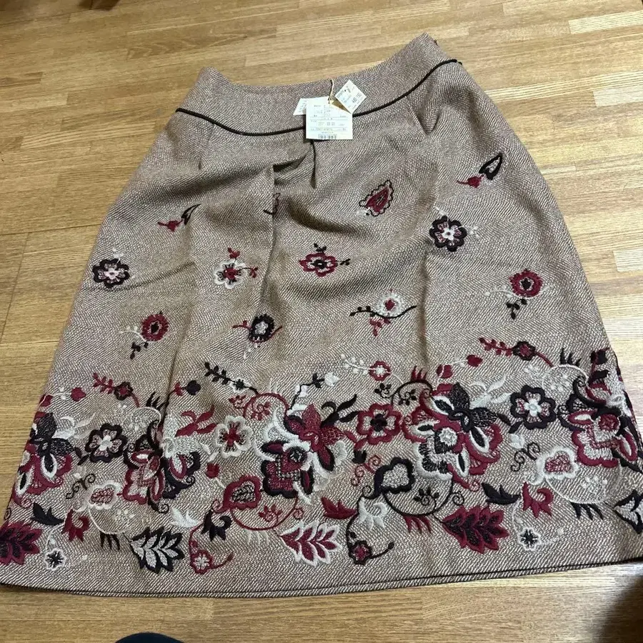 꽃무늬 자수 브라운 미디 스커트 66-70