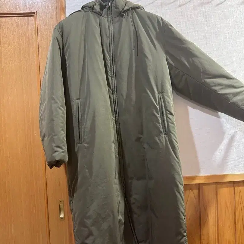 미사용 새상품 23구 후드 부착 롱 다운 자켓 카키 40
