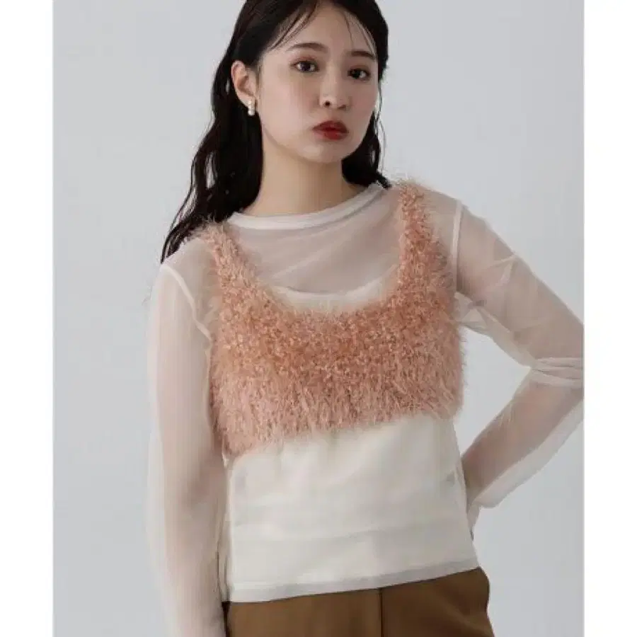 • 브라운 인조 모피 베스트