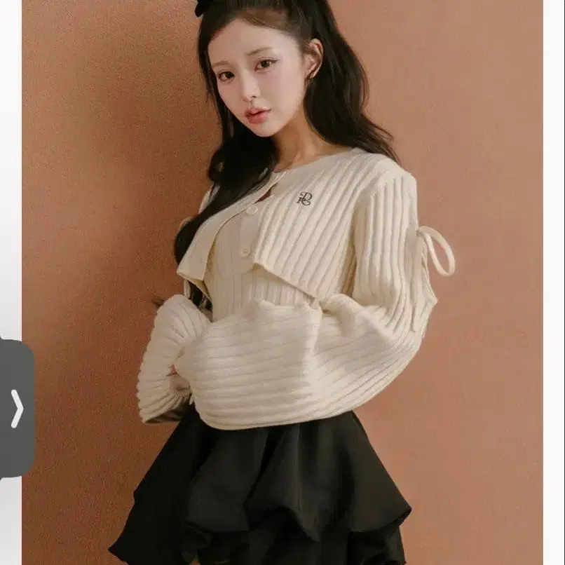 아이보리 스트라이프 디자인의 니트 스웨터, 프리 사이즈로 스타일리시한 인상.