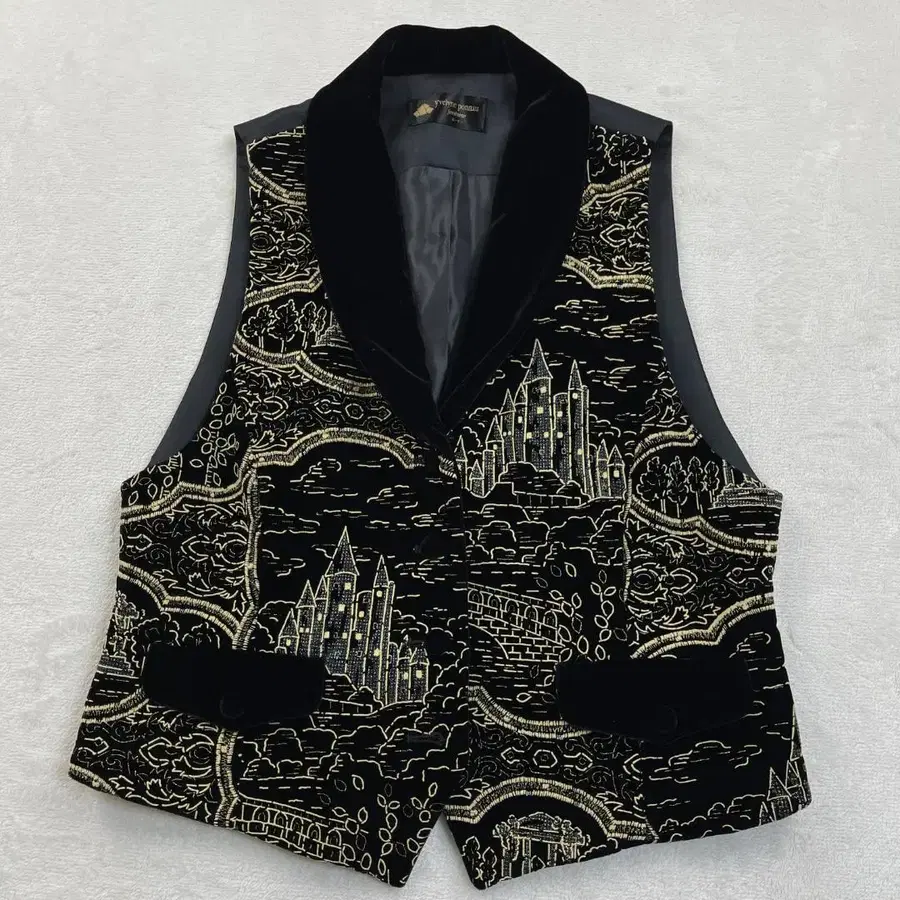 Vintage 벨로아 베스트 금 프린트 블랙 성
