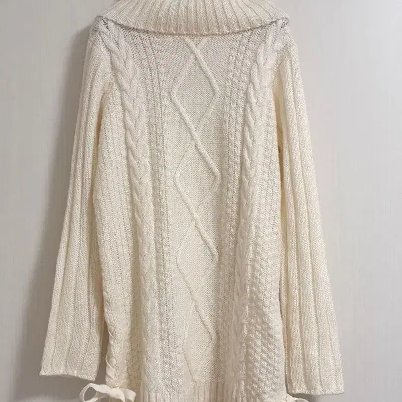 아이보리 케이블 짜임 터틀넥 니트 원피스