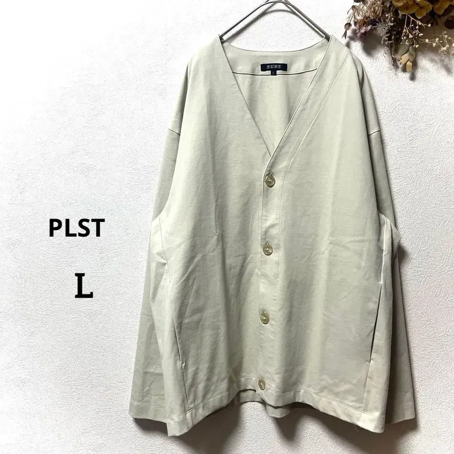 크림색 V넥 버튼 긴팔 가디건, 코튼 혼합 소재로 쾌적한 착용감.