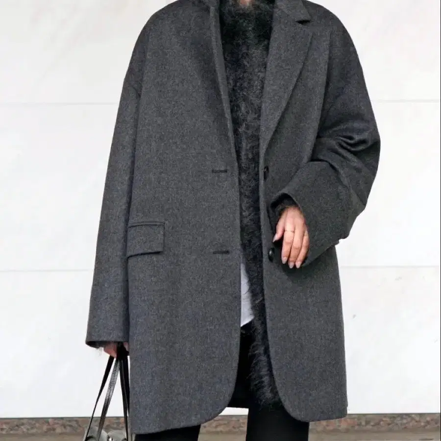 [ 미사용 새상품 ] 오버 사이즈 코트 그레이 오버 사이즈 울 코트