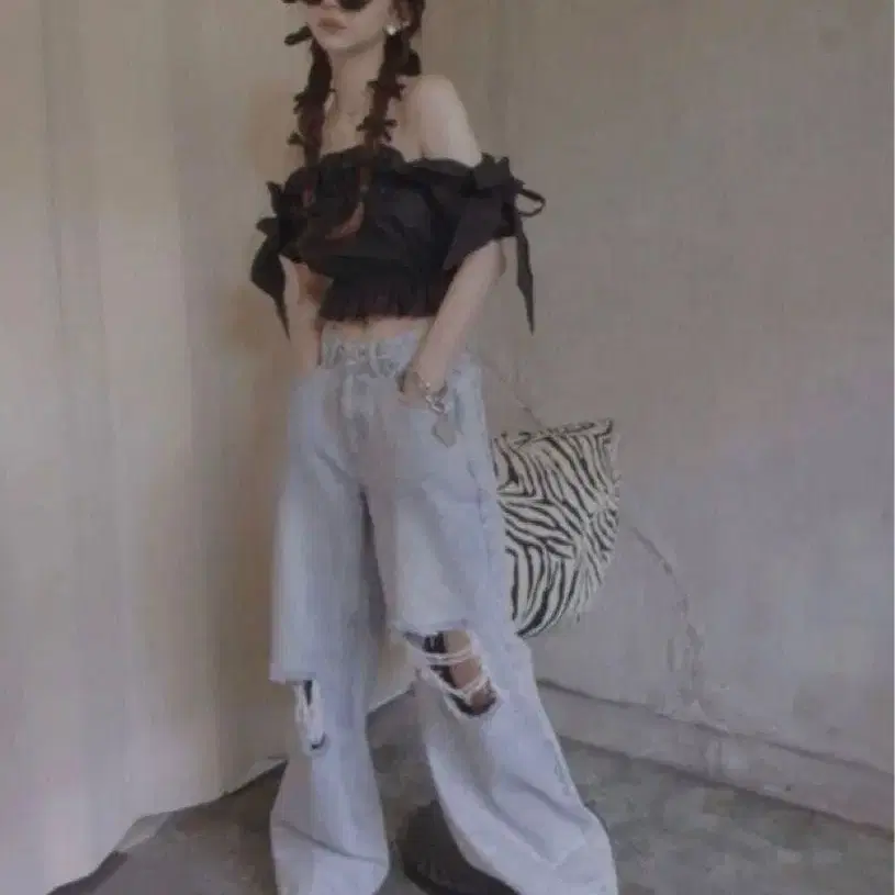 헐렁한 실루엣과 데미지 가공이 포인트인 이 팬츠는 캐주얼한 상의와 걸리시한 상의 모두와 잘 어울리는 아이템입니다.