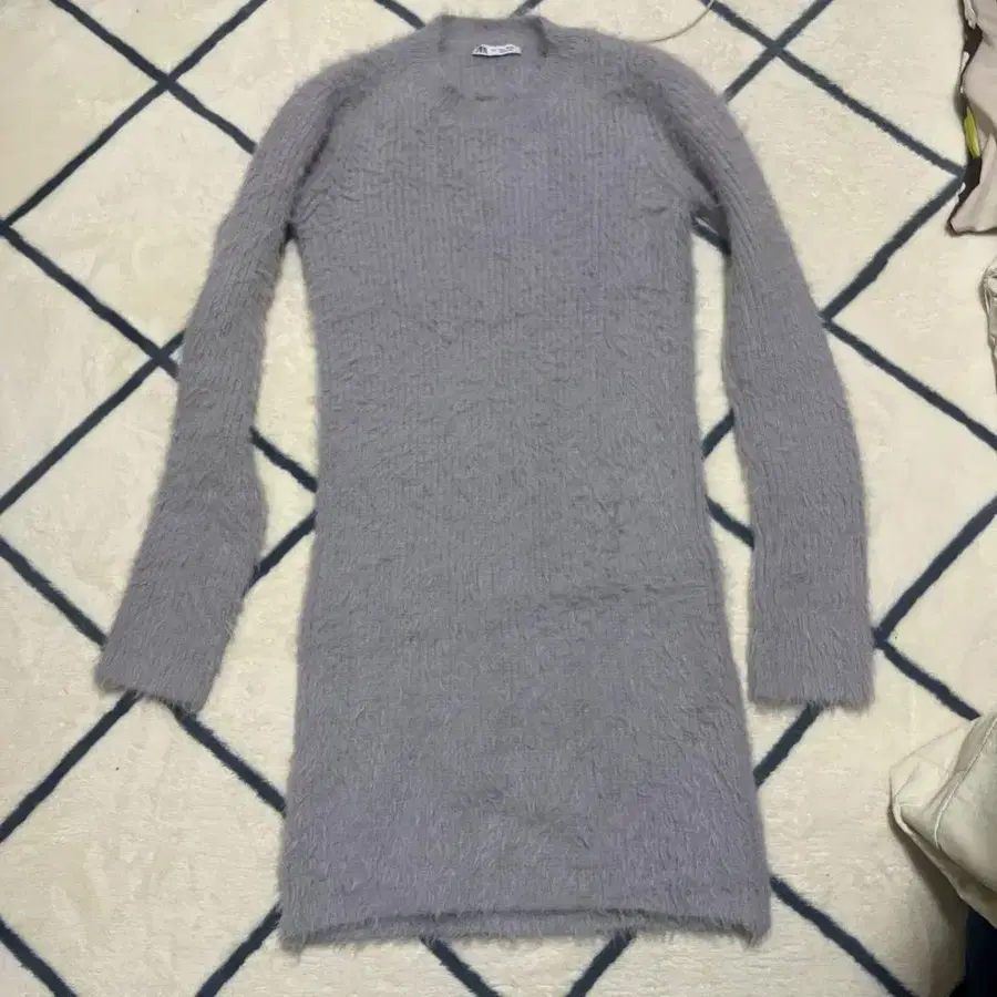 연보라색 복슬복슬 니트 긴팔 오픈백