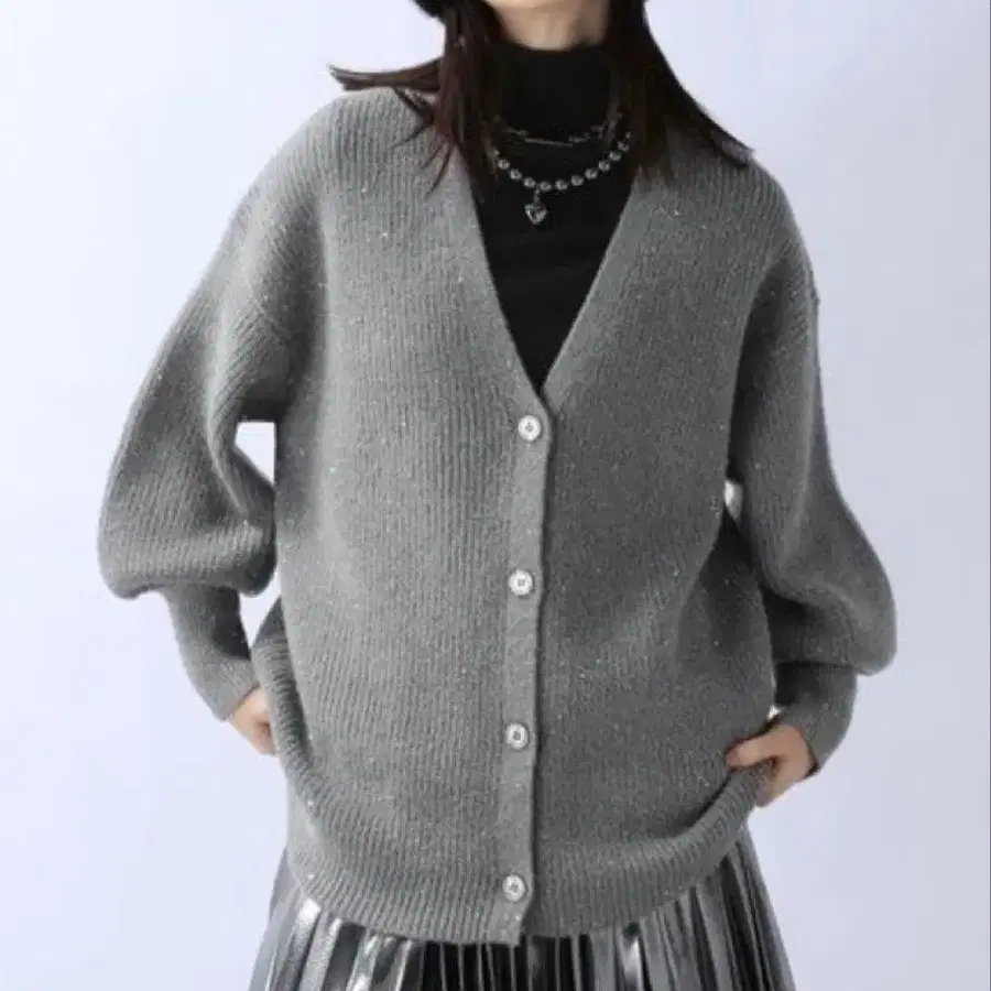 프로필 필독 JEANASIS 라메 스팽글 카타아제 V넥 가디건 그레이