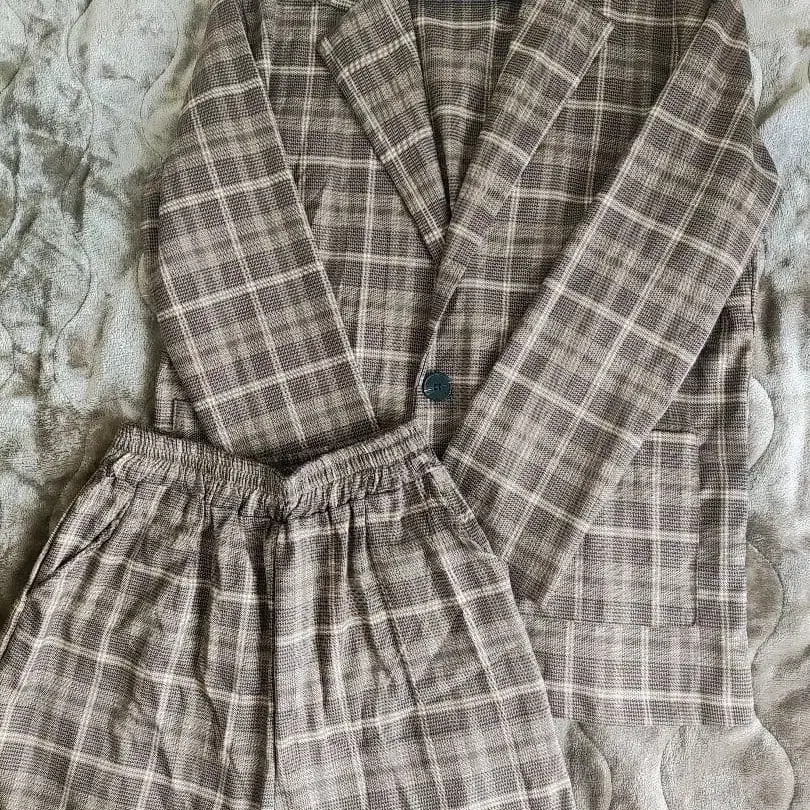 브라운 계열 체크 무늬 셋업