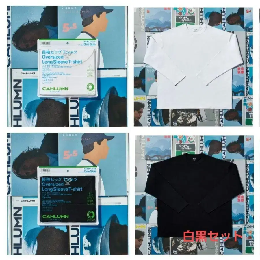 CAHLUMN 긴팔 T셔츠 롱T XXL 훼미리마트 블랙 화이트 세트
