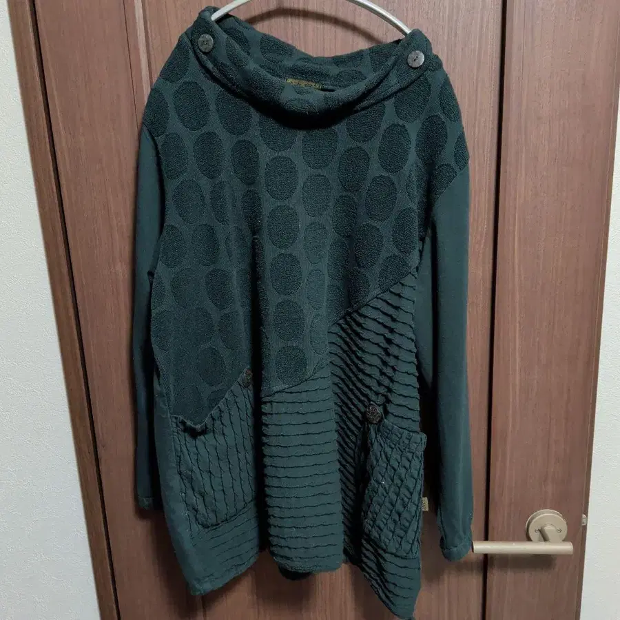기장 75 가슴 너비 57 평평하게 놓았을 때의 사이즈입니다. 깊이감 있는 그린 색상입니다. 도트 무늬와 다른 소재의 디자인이 귀엽고, 앞뒤에 달린 포켓도 멋스럽습니다. 밑단에는 조임 끈이 있어, 조여서 벌룬 형태로 연출해도, 둥근 느낌으로 귀엽게 착용하실 수 있습니다.