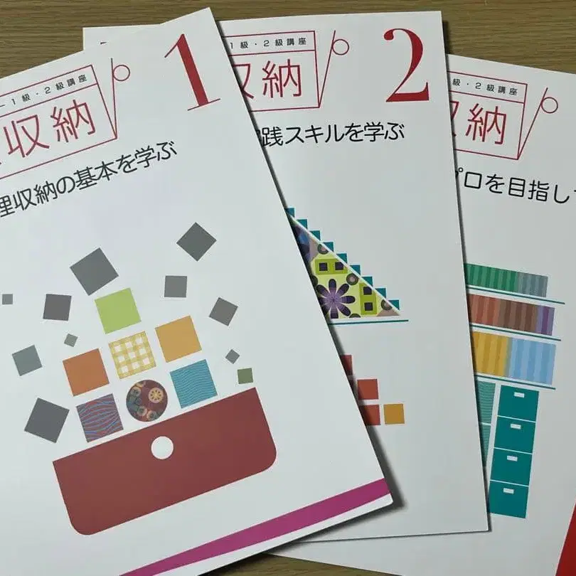 - 세트 내용: 정리 수납의 기본을 배우는 1, 정리 수납 스킬을 배우는 2, 정리 수납의 프로를 목표로 하는 3