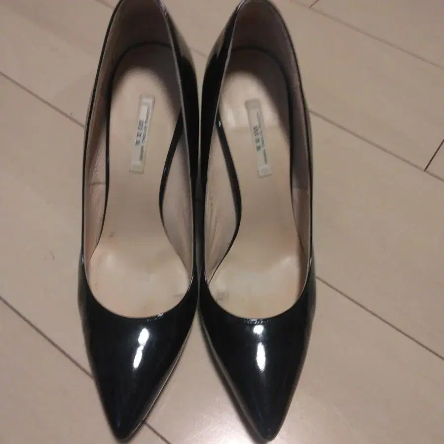 에나멜 소재의 블랙 스틸레토 하이힐. - 색상: 블랙 - 디자인: 스틸레토 - 굽 높이: 하이힐 - 소재: 에나멜 방문해 주셔서 감사합니다. 컬러 - 블랙 계열 굽 높이 - 5.1~7cm 발가락 - 라운드토 밑창 굽 모양 - 핑힐 얼룩, 찢김, 냄새 등 - 없음