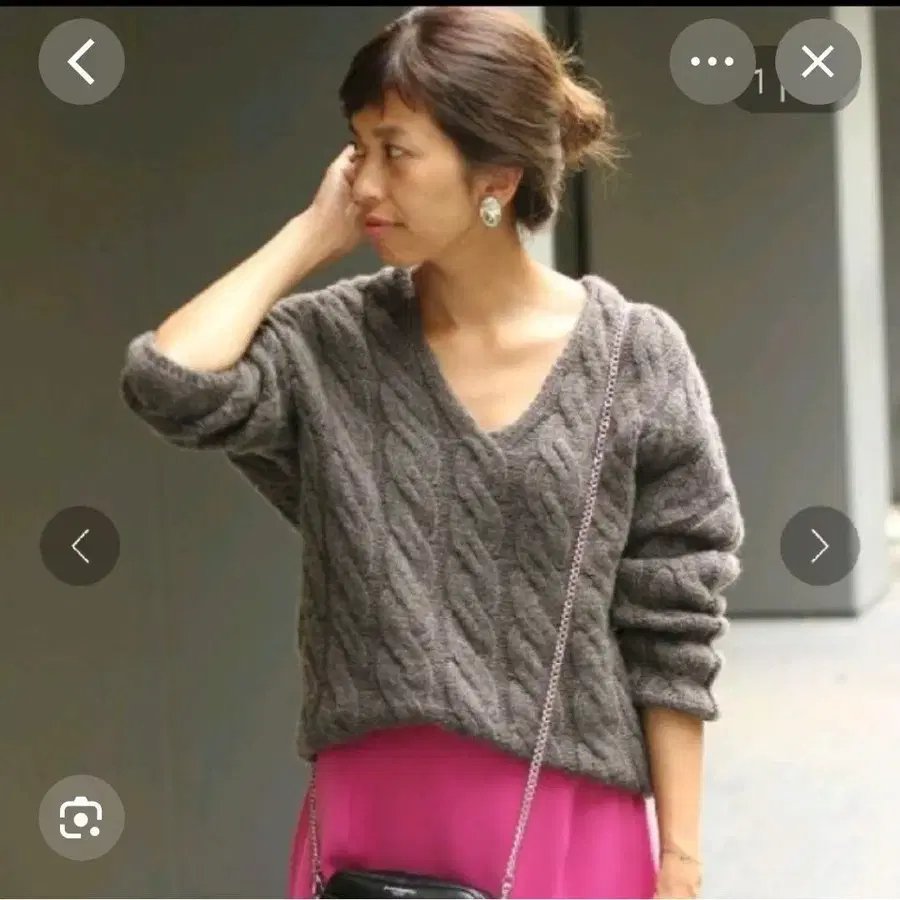 다크 그레이 V넥 케이블 짜임 니트