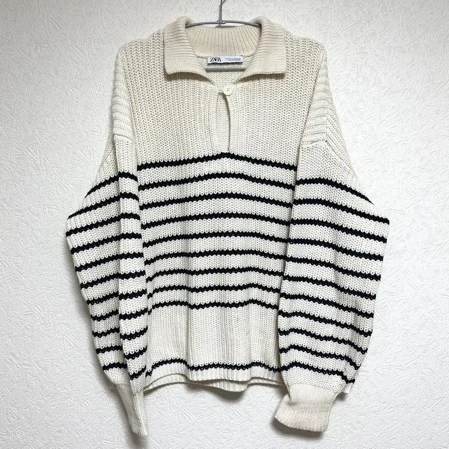 오버 사이즈 니트 폴로 스웨터 보더 아이보리입니다.