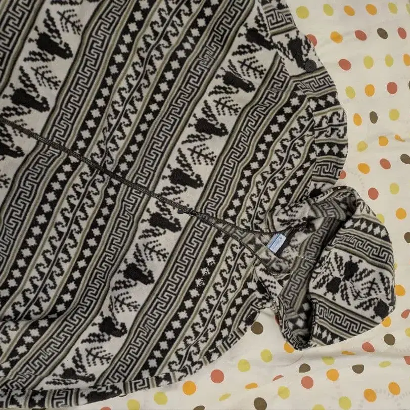 플리스 후드 부착 판초 블랙 앤 화이트 기하학 패턴