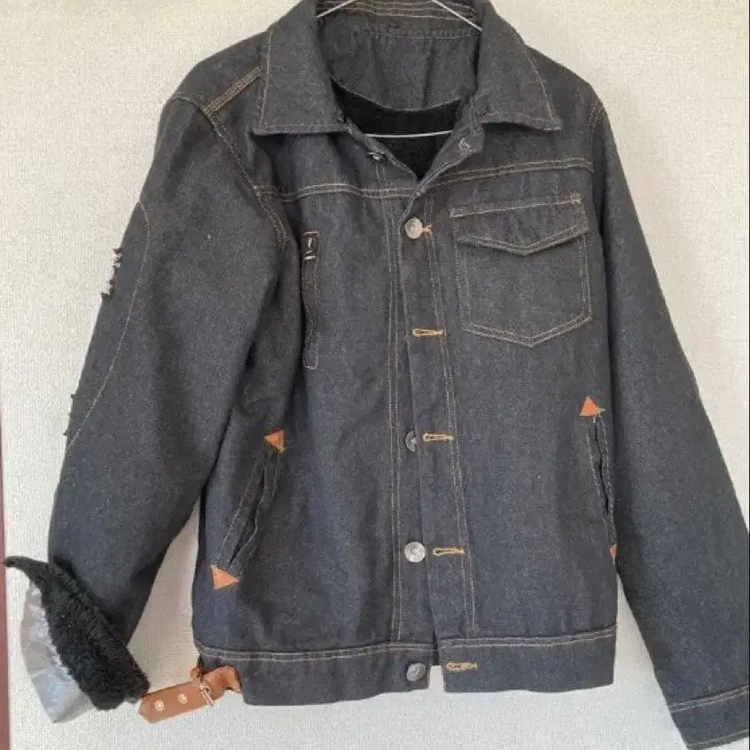 다크 그레이 색상의 캐주얼 데님 자켓입니다. 안쪽에 포켓이 있고, 가죽 스트랩이 특징입니다. 남성용입니다. 구매 후 시착만 한 상품으로 깨끗합니다! - 색상: 다크 그레이 - 안쪽 포켓: 있음 - 디자인: 캐주얼 스타일 - 장식: 가죽 스트랩 포함 방문해 주셔서 감사합니다. 사이즈 - L