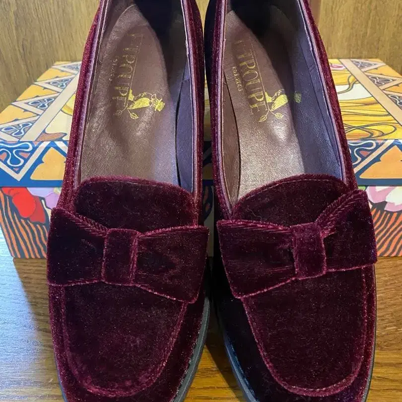 F-Troupe 버건디 벨벳 리본 로퍼 박스 포함