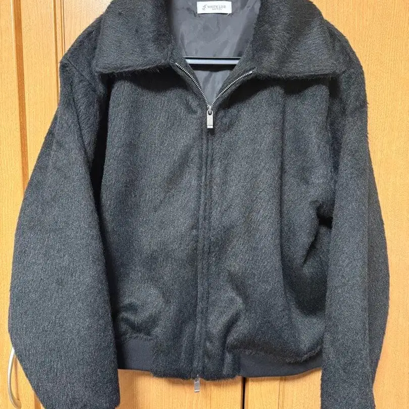 샤기 지퍼 블루종 짧은 기장 아우터 블랙