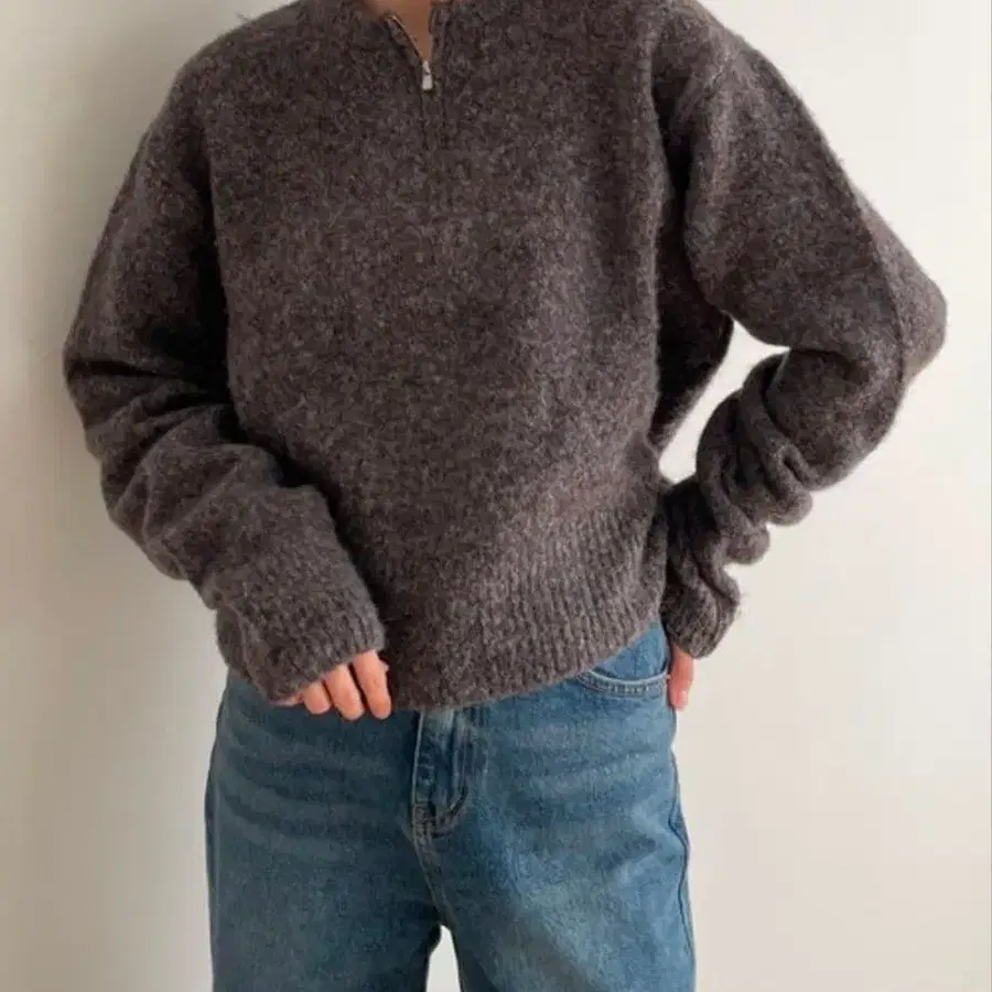 [ CANAL JEAN ] El mar 하프 ZIP 크루 소프트 니트