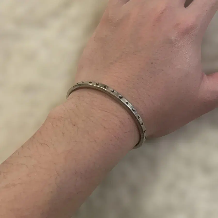 실버 소재에 별 모양 장식이 들어간 뱅글. - 소재: 실버? - 디자인: 별 모양 장식 - 타입: 뱅글 이 제품은 빅 아메리칸 샵에서 4,000~5,000 정도에 구매한 뱅글입니다. 어느 정도 사이즈 조절이 가능합니다. 방문해 주셔서 감사합니다.