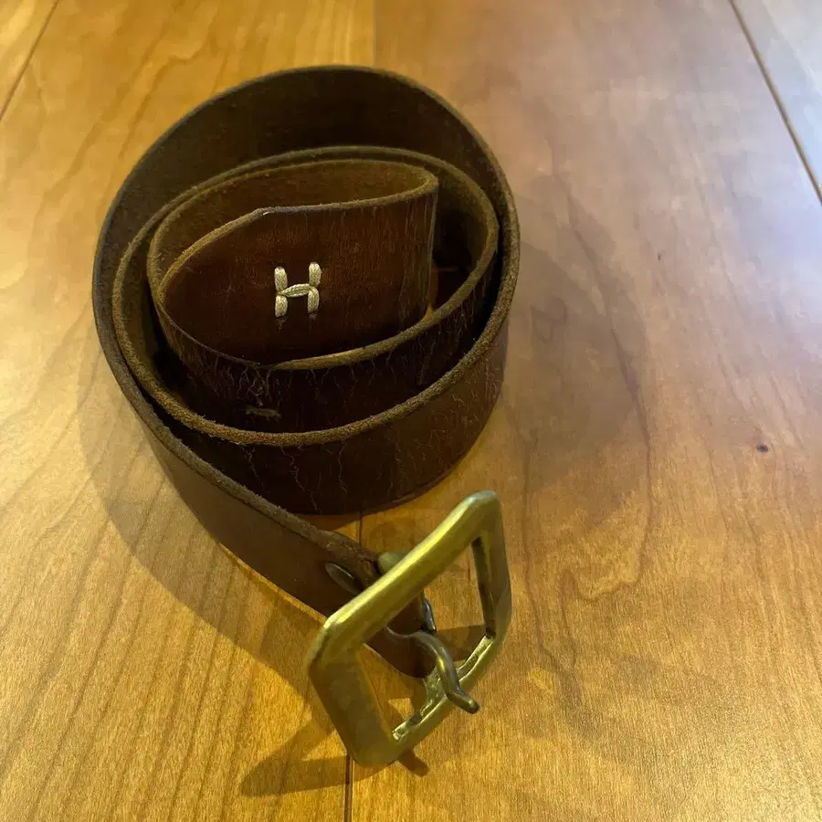 H 로고가 새겨진 브라운 천연 가죽 스퀘어 버클 벨트. 정가 16500엔 - 색상: 브라운 - 버클 소재: 금속제 - 스타일: 가죽 벨트 - 특징: H 로고 포함 - 버클 디자인: 스퀘어 소재 - 천연 가죽