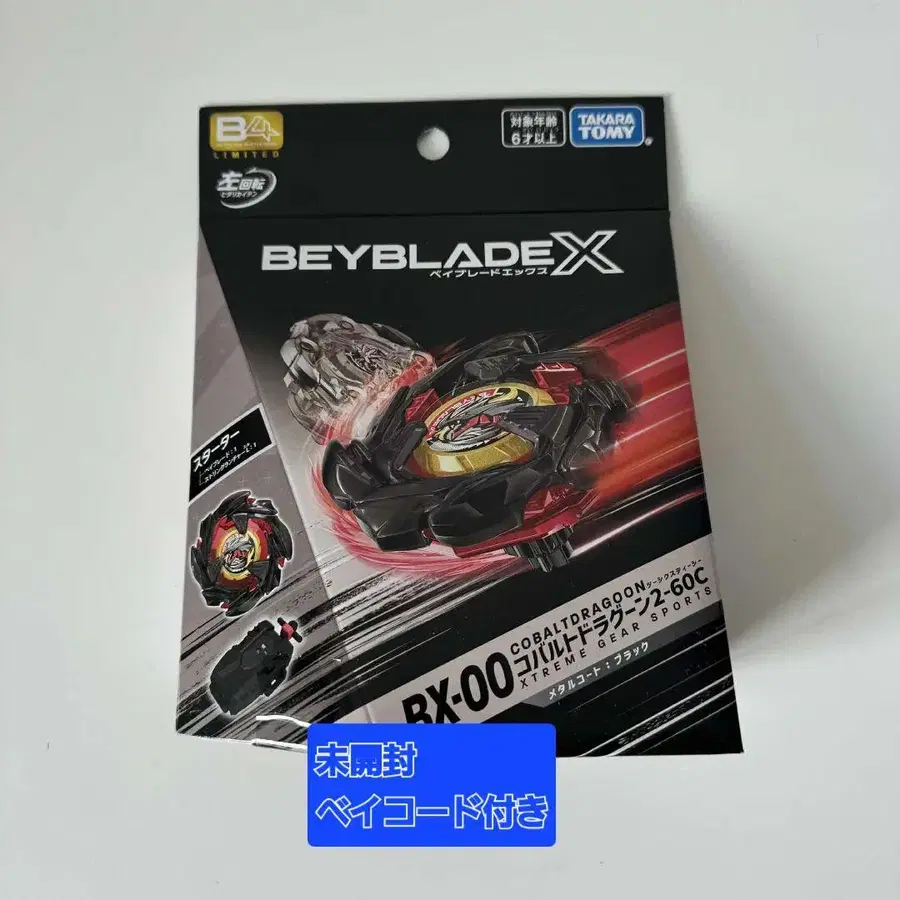 타카라토미 베이블레이드 X 회장 한정 상품 BEYBLADE X BX-00 코발트 드라군 2-60C 메탈 코트 블랙 ver 미개봉 새상품 베이 코드는 미사용입니다. 포장재로 포장하여 발송해 드립니다. 미개봉품입니다.