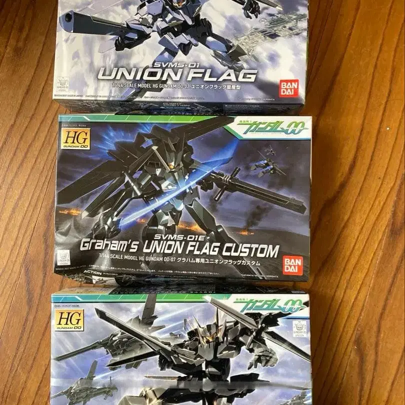 1/144 스케일 HG 건담 프라모델, UNION FLAG 시리즈 3종 세트.