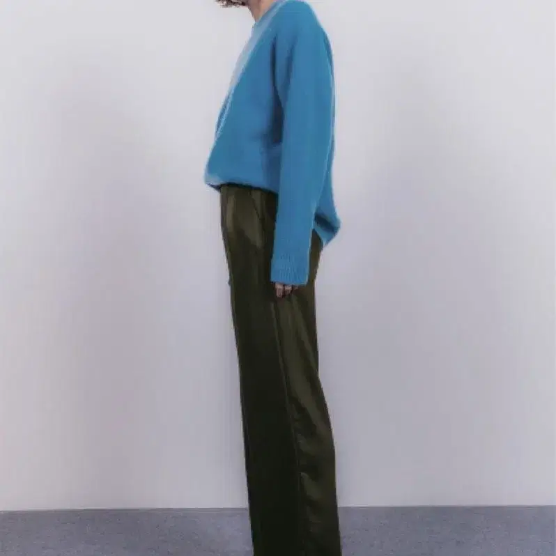Human woman 센터 프레스 와이드 팬츠(블루)
