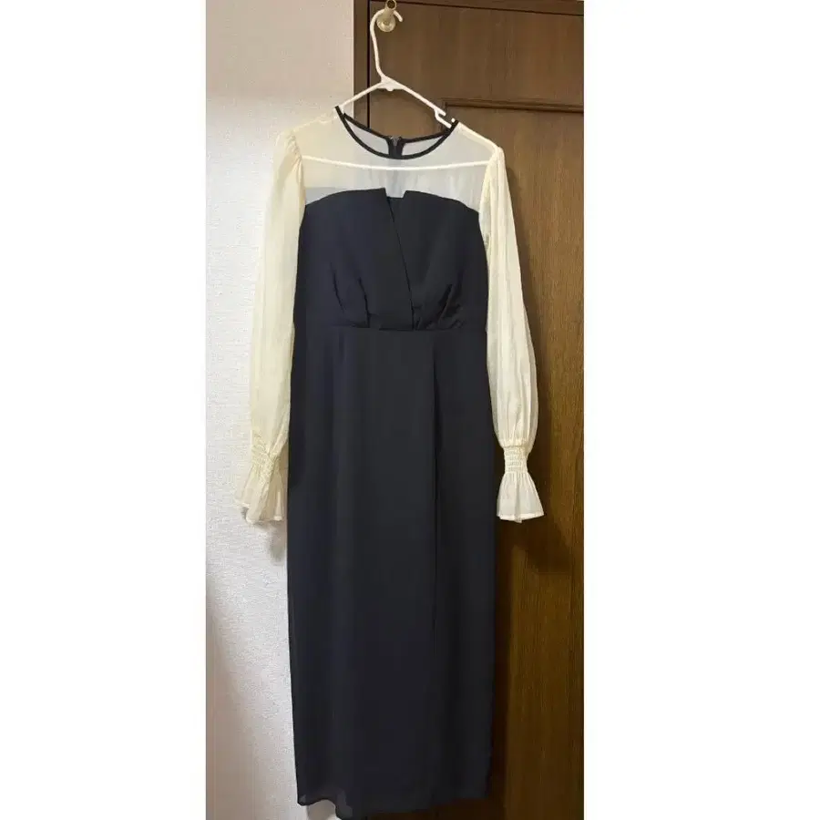 비침이 있는 시스루 긴팔과 프릴 소매가 고급스러우며, 블랙 x 크림 배색이 성숙해 보이고 체형도 예쁘게 커버해 줍니다. 허리 절개 디자인으로 스타일업 효과도 있습니다.