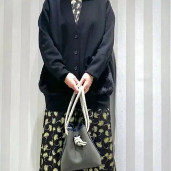 볼륨감 있는 인조 모피 포켓이 시선을 사로잡는 가디건. 고급 울의 빗질한 실에 소프트 스트레치사를 플레팅하여 편직한 밀라노 리브 소재를 사용했으며, 포근하고 소프트한 질감과 클리어한 표면감이 매력입니다. 적당히 여유 있는 실루엣에 드롭 숄더, 힙을 덮는 긴 기장으로 릴랙스한 성인스러운 밸런스를 연출합니다. 소매에 각도를 주거나, 뒷모습에 볼륨감을 주는 등 디테일까지 신경 써서 완성했습니다. T셔츠를 매치한 캐주얼 스타일은 물론, 보타이 블라우스나 원피스와의 시크한 코디도 추천합니다. 적당한 무게감이 있어 라이트한 자켓처럼 활용하기 좋은 아이템입니다. 색상 블랙 소재 울 68% 폴리에스테르 32% 그 외 소재: 폴리에스테르 100% 정가 35,200엔 사이즈 S(9호, 원사이즈) 기장 60 가슴 너비 57 소매 75 2.3회 짧은 시간 착용했으며, 깨끗한 상태라고 생각합니다.