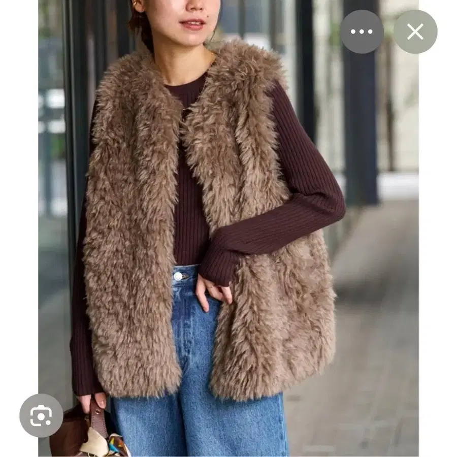 브라운 인조 모피 베스트