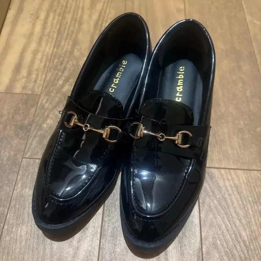 미사용 새상품 슬림 레그 효과 발군 통굽 로퍼 에나멜 블랙