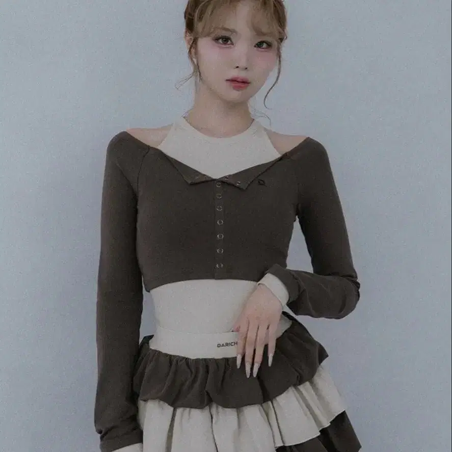 미사용 새상품 Darich 오프숄더 레이어드 리브 상의