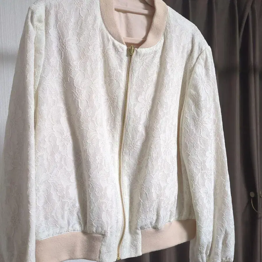 아이보리 핑크의 레이스 소재로, 집업 디자인의 긴팔 자켓입니다. 이 상품은 리버서블입니다. - 색상: 아이보리, 베이지 핑크 - 소재: 레이스 - 디자인: 집업 - 소매: 긴팔 - 밑단: 리브 포함 #트란테안손드모드 #블루종 #레이스자켓 #리버서블 #미사용새상품 방문해 주셔서 감사합니다.