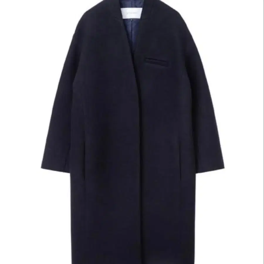 르쉘 블루 롱 체스터 코트 노카라 블랙