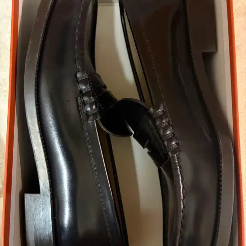 신발의 혀 부분에 점착물이 약간 묻어 있습니다. 구매 후 한 번만 신었습니다. 새상품급입니다. 색상 - 블랙 계열 소재 - 천연 가죽