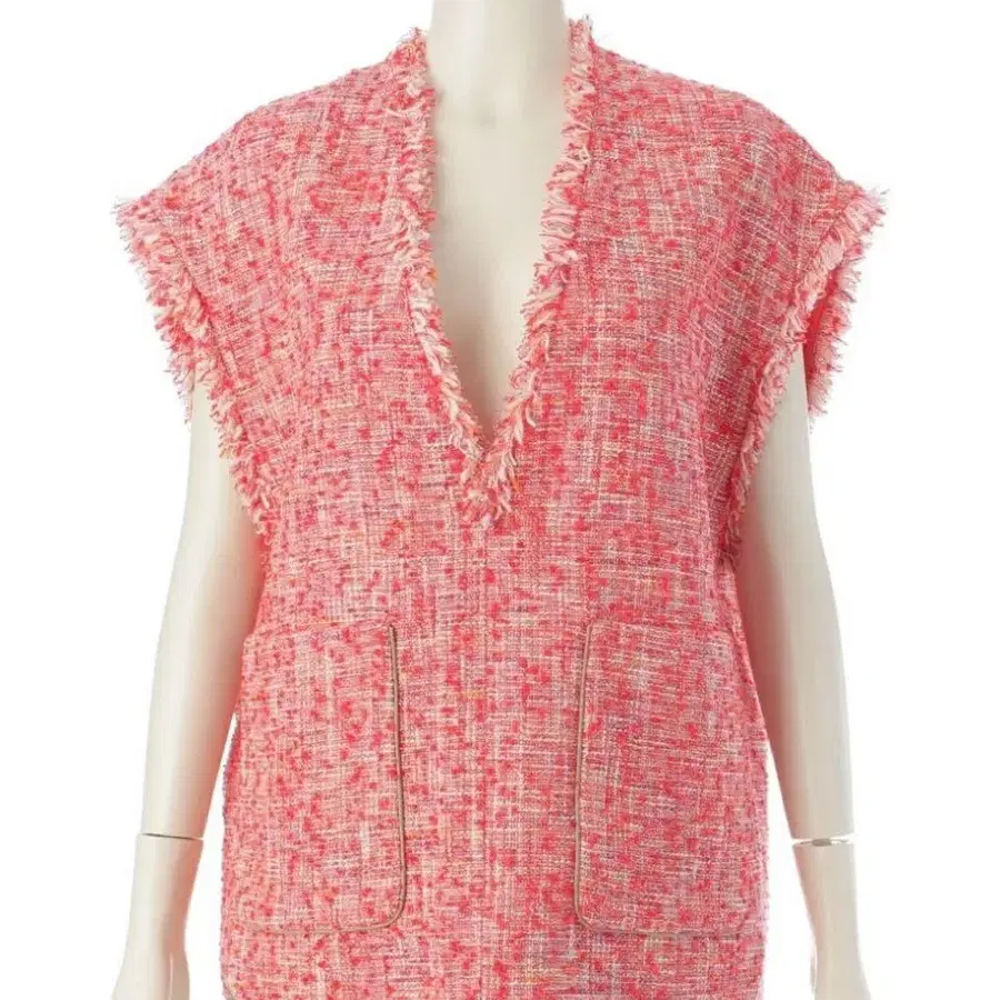 트위드 V넥 프론트 포켓 풀오버 슬리브리스 상의