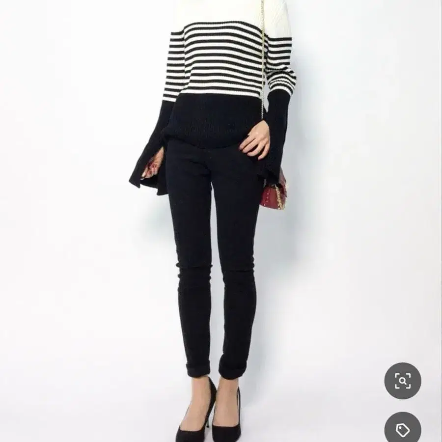 보더 무늬 니트 스웨터 긴팔 크루넥