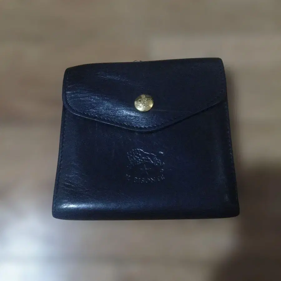컨디션 최상 IL BISONTE 일비종떼 가죽 접이식 지갑 다크 네이비