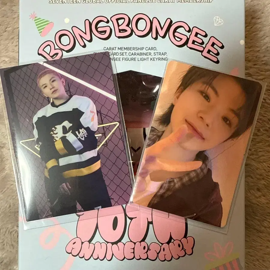 트레이딩 카드 묶음 판매입니다. HOME 셋업 부속 트레이딩 카드 10th 멤버십 접힘 방지, 방수 처리하여 발송합니다. 그룹명 - SEVENTEEN 멤버명 - 우지