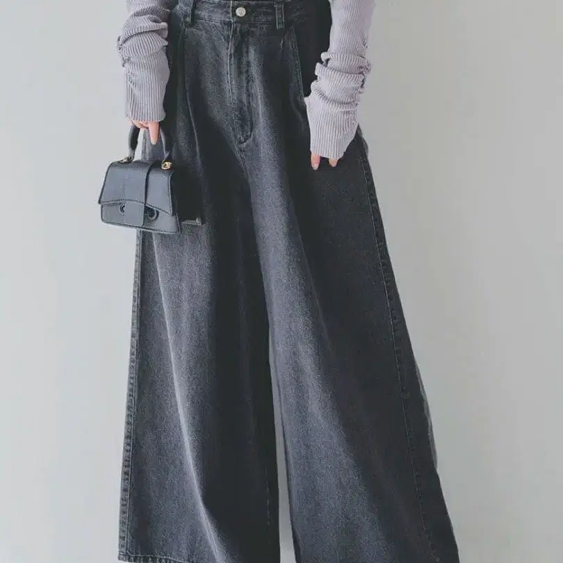 dazzlin 더블 하이웨스트 와이드 데님 팬츠