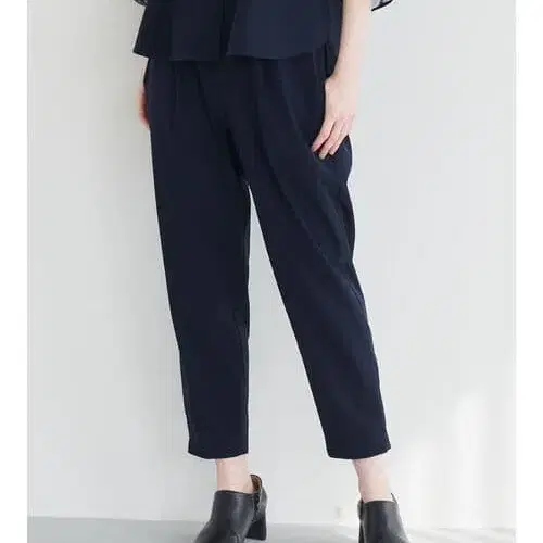여동생의 것으로, 엉덩이 둘레는 깔끔하게 정리하고, 슬림하게 마무리한 테이퍼드 팬츠는 다리가 예뻐 보이는 효과가 있는 실루엣입니다. 포멀한 느낌이 있어 오피스 코디는 물론, 포멀한 자리나 엄마들에게도 대활약할 것이므로 추천합니다. 블라우스부터 니트 등 캐주얼 상의에도 맞추기 쉬운 돌려입기 좋은 팬츠로, 하이웨스트지만 뒷 허리밴딩으로 조이지 않고, 스트레치가 잘 되는 소재라 편하게 입을 수 있는 것이 기쁜 포인트입니다.