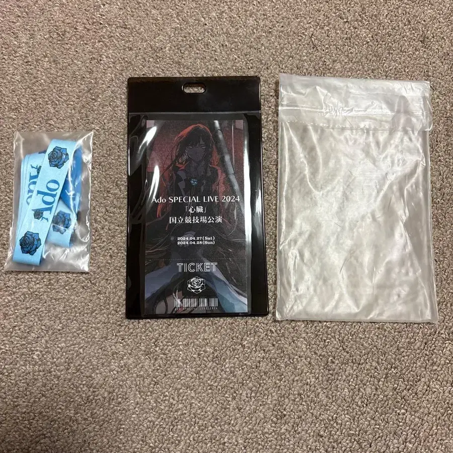 Ado SPECIAL LIVE 2024 입장권과 파란색 밴드 포함. - 이벤트명: Ado SPECIAL LIVE 2024 - 티켓 타입: 입장권 - 밴드명: Ado - 밴드 색상: 파랑 - 밴드 디자인: 장미 디자인 - 부속품: 투명 케이스 NC/NR 부탁드립니다.