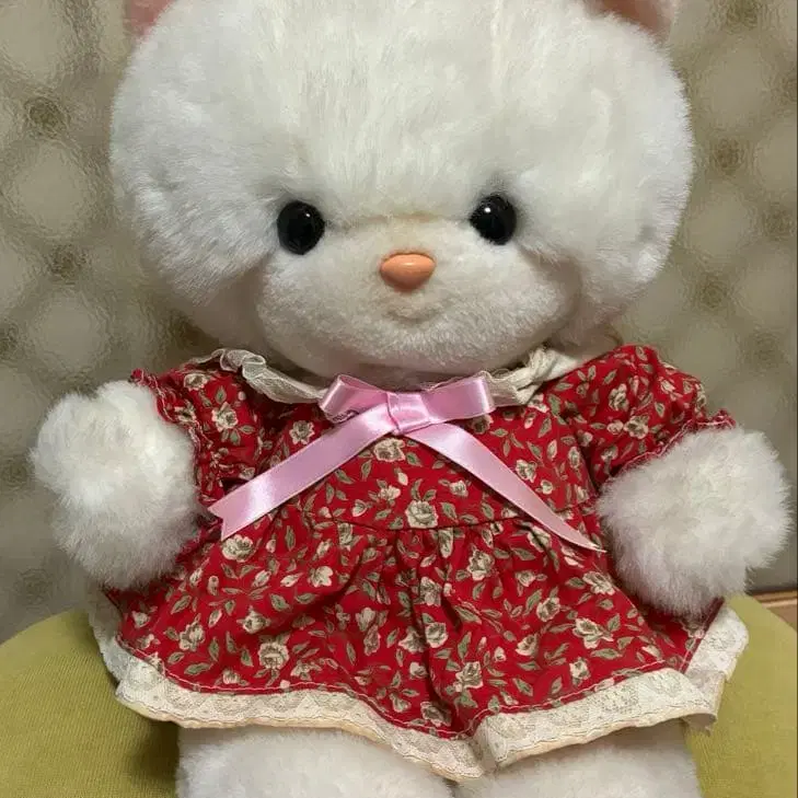 오래된 물건이라 입 주변과 의류의 레이스 부분에 약간의 황변이 있습니다.