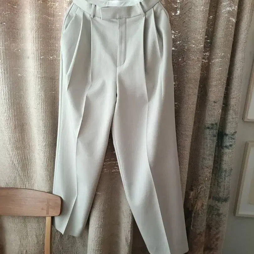 90퍼센트 할인 에스트네이션 옐로우 그린이 섞인 그레이 플리츠 슬랙스