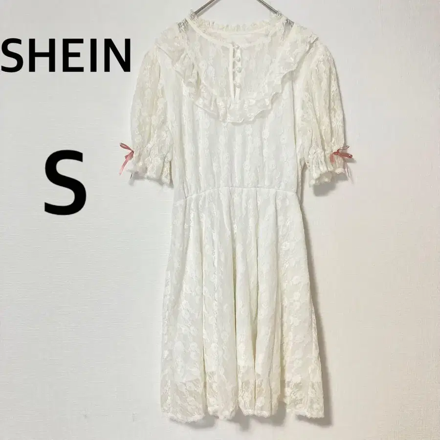 SHEIN 무릎 기장 레이스 원피스 [ S ] 리본 포함 허리밴딩