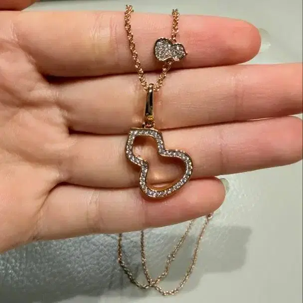 호리병 모양 목걸이, 크리스탈 스톤 포함. - 디자인: 호리병 모양 펜던트 - 소재: 로즈 골드 도금 - 장식: 크리스탈 스톤 포함 - 클로징: 랍스터 클래스 - 체인 길이: 2개의 체인 구매 후 취소, 반품은 접수하지 않습니다. 잘 부탁드립니다. 방문해 주셔서 감사합니다.